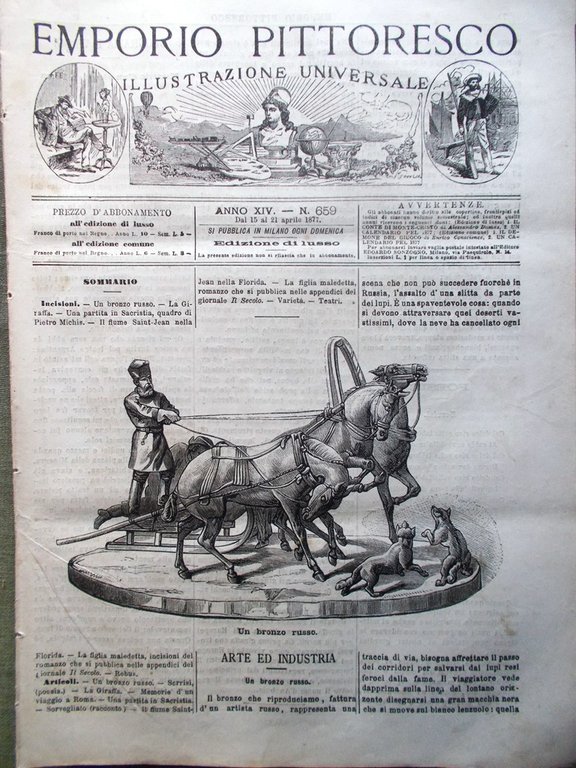 Emporio Pittoresco del 15 Aprile 1877 Erminia Fusinato Florida Dumas Saint-Jean