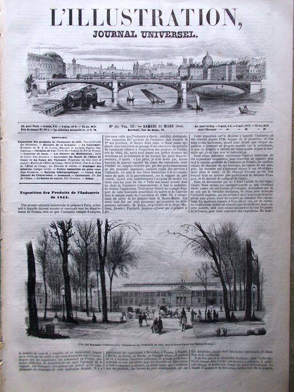 L'Illustration Journal Universel 23 Mars 1844 Chemins de Fer Musée Cluny Thermes