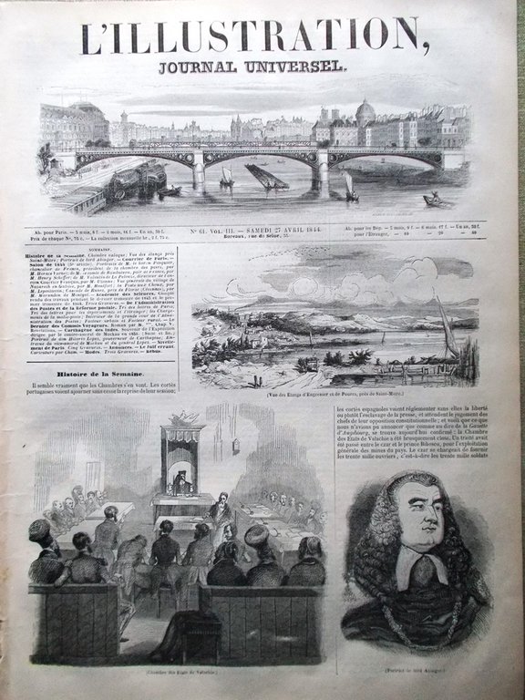 L'Illustration Journal Universel 27 Avril 1844 Réforme des Postes Seine Nazareth