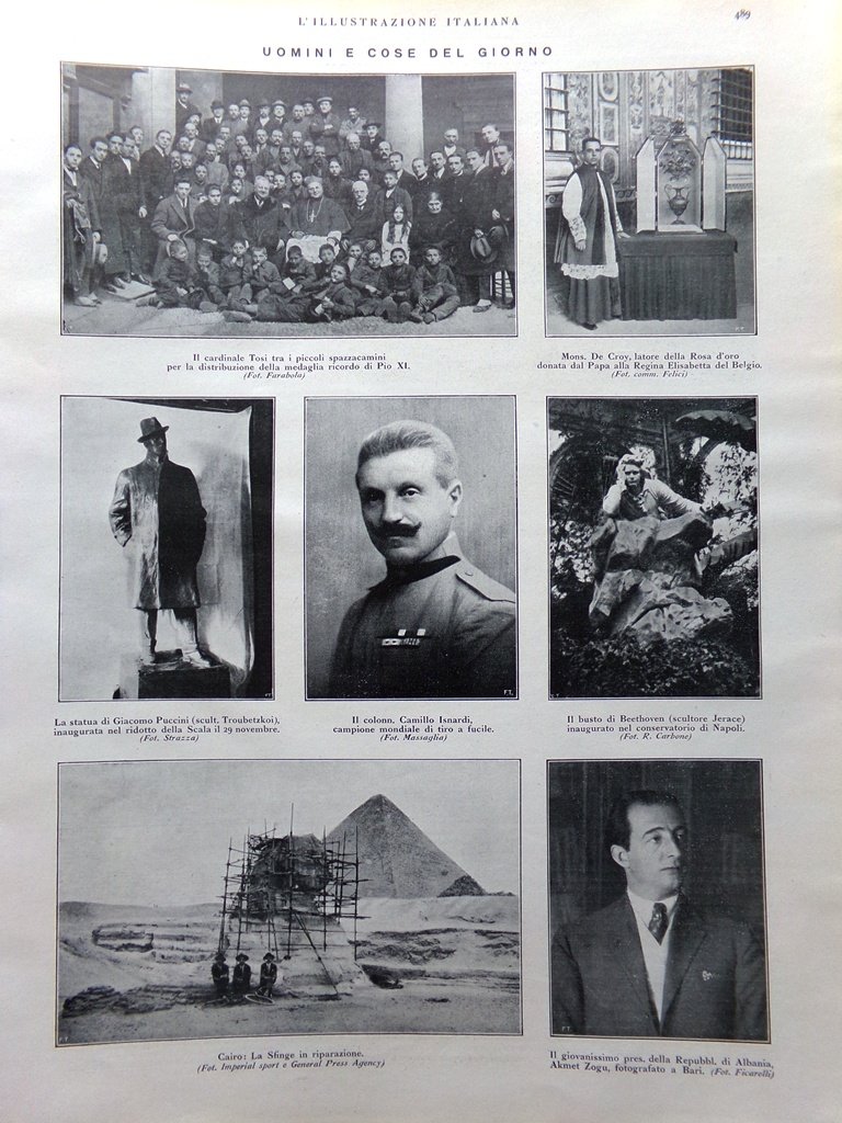 Uomini e cose del giorno: il cardinale Tosi, la statua di Puccini (Troubetzkoi), la Sfinge in riparazione al Cairo
