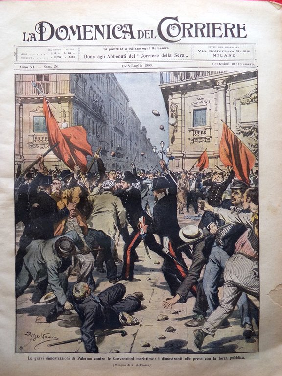 Le gravi dimostrazioni di Palermo contro le Convenzioni marittime: i dimostranti alle prese con la forza pubblica (Achille Beltrame)