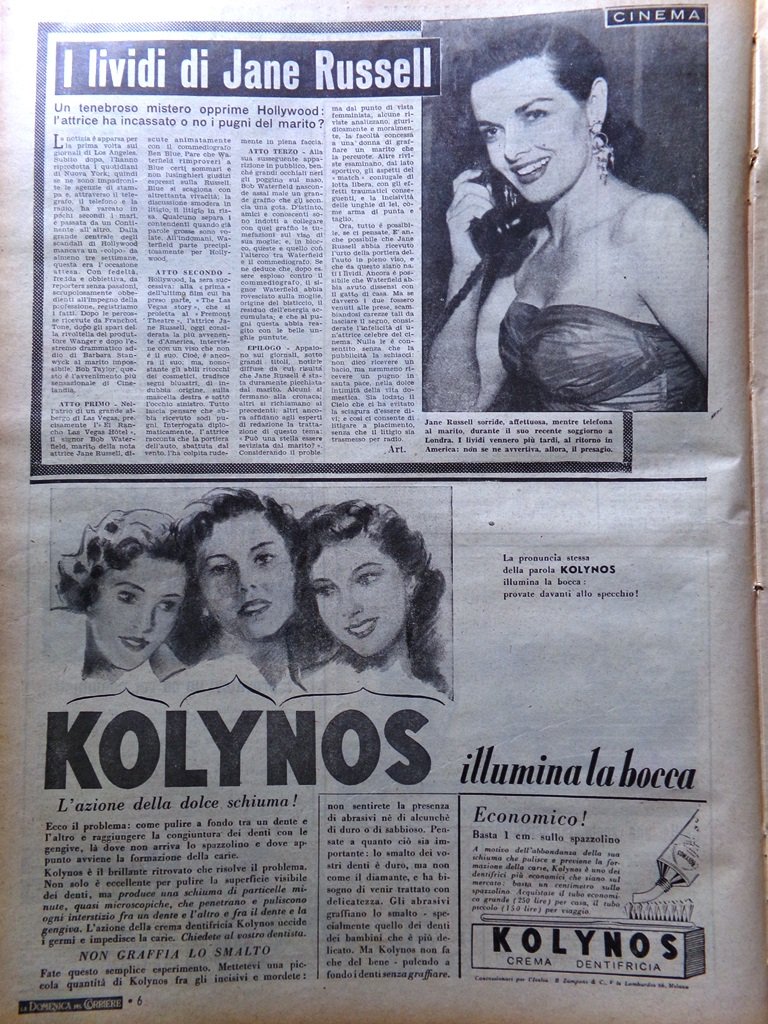 La Domenica del Corriere 23 Marzo 1952 Milano Jane Russell Disastri Aerei Ferma | Newspapers |