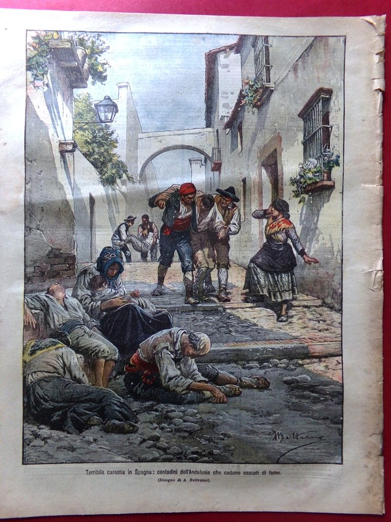 Terribile carestia in Spagna: contadini dell'Andalusia che cadono esausti di fame (Achille Beltrame)