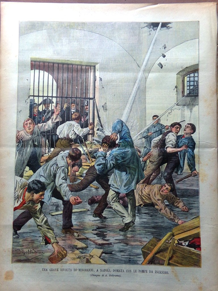 Una grave rivolta di minorenni a Napoli, domata con le pompe da incendio (Achille Beltrame)