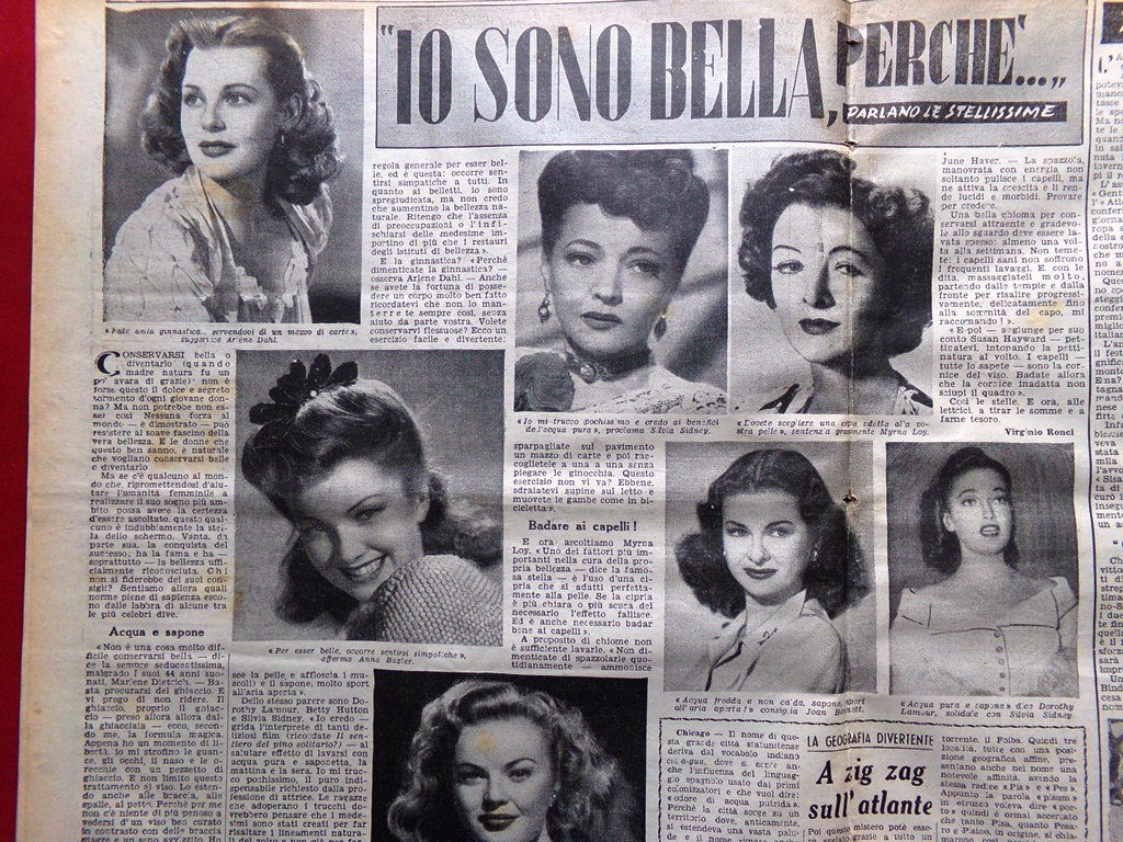 Parlano le stellissime: io sono bella perché. Sivlia Sidney, Myrna Loy, Dorothy Lamour, Joan Bennett, june Haver, Anna BAxter, Arlene Dahl