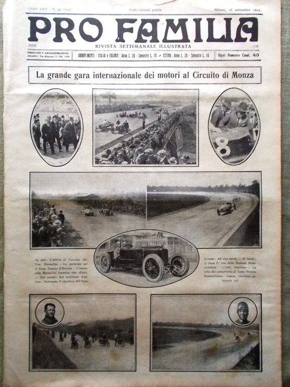 Pro Familia del 16 Settembre 1923 Terremoto Tokyo Yokohama Circuito Monza Cenci