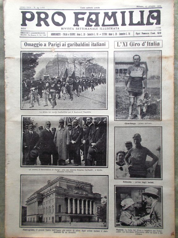 Pro Familia del 17 Giugno 1923 Mussolini Giro d'Italia Girardengo Perosi Rosario