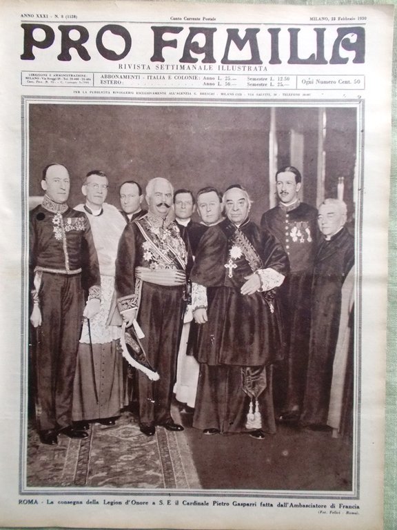 Pro Familia del 23 Febbraio 1930 Pomi Agostino Turati Barberini Castel Gandolfo