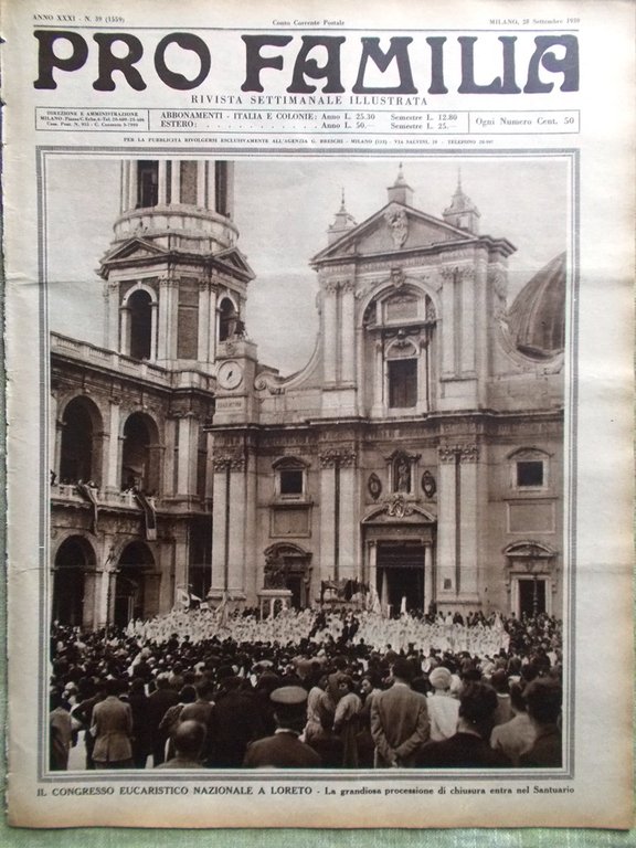 Pro Familia del 28 Settembre 1930 Edison Marconi Loreto Jacopone Adamello Maggi