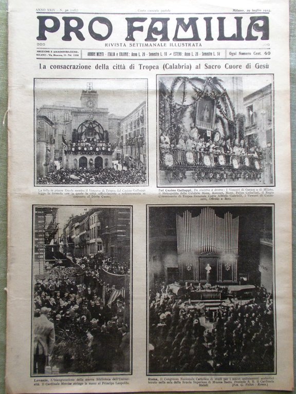 Pro Familia del 29 Luglio 1923 Tropea Pascal Mussolini Manzoni Leopardi Società