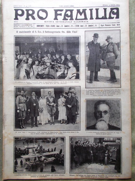 Pro Familia del 4 Marzo 1923 Rontgen Finzi Copernico Masson Bacilieri Mottarone