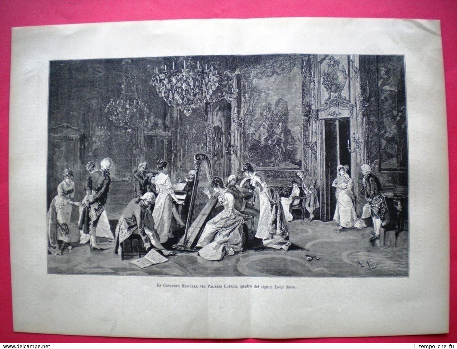 Rara Incisione 1885 - Un Concerto Musicale nel Palazzo Clerici, quadro del signor Luigi Sorio Dimensioni 37x26cm II1885-028 Qualora vogliate delle scansioni migliori contattateci, soddisferemo ogni vostra richiesta. Paypal Carta di credito Bonifico bancario Accuratamente adagiate su un cartoncino e protette da pellicola trasparente rigida il tutto viene inserito dentro plico di adeguate dimensioni per proteggerne l'integrità