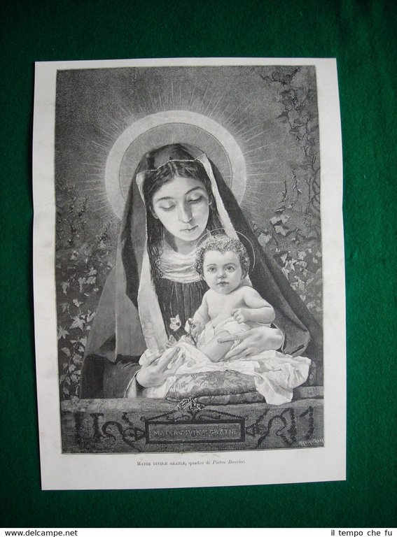 Rara Incisione Estratta da Rivista d'Epoca del 1897 1897 - Mater divinae gratiae, quadro di Pietro Bouvier Dimensioni 22x31cm II1897-06 Qualora vogliate delle scansioni migliori contattateci, soddisferemo ogni vostra richiesta. Paypal Carta di credito Bonifico bancario Accuratamente adagiate su un cartoncino e protette da pellicola trasparente rigida il tutto viene inserito dentro plico di adeguate dimensioni per proteggerne l'integrità