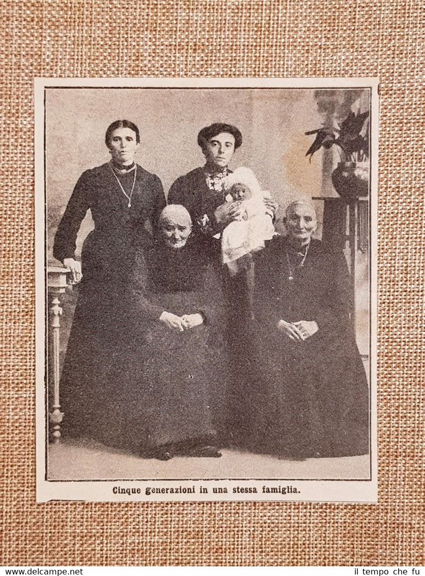5 donne e 5 generazioni di una stessa famiglia Stampa del 1914 Rara stampa estratta da pubblicazione del 19145 donne e 5 generazioni di una stessa famigliaCodice articolo: Stapo-064 Dimensioni: Cm 9,00 x 11,00