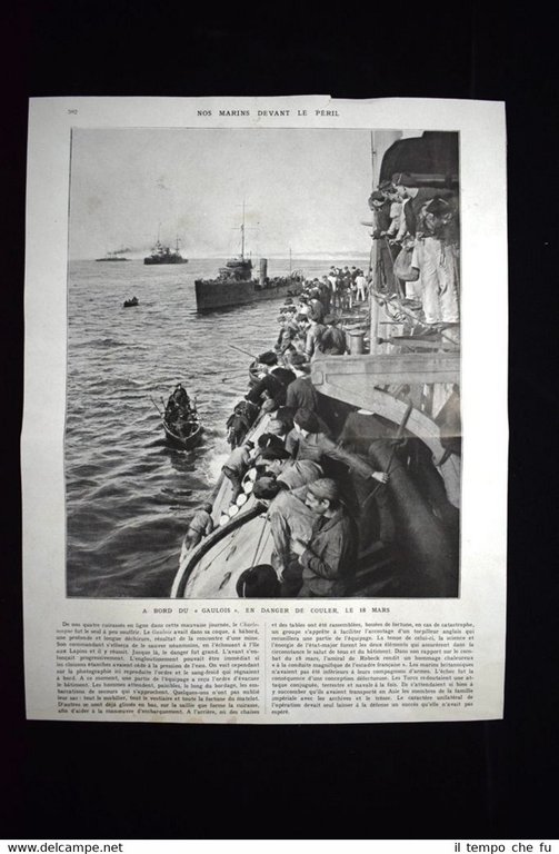 Rara stampa Estratta da pubblicazione del 1922 sulla Prima Guerra Mondiale del 1914-1918. .stampa che ha quindi oltre 95 anni! Rare print Extracted from publication of 1922 about the First World War of 1914 -1918. . press that has so over 95 years! Impression rare Extrait de la publication de 1922 sur la Première Guerre mondiale 1914-1918 . . press qui a tellement plus de 95 ans! Seltene druck Gewonnen aus der Veröffentlichung von 1922 auf dem Ersten Weltkrieg 1914-1918 . . Drücken, die so über 95 Jahren! Nos marins devant le péril A bord du Gaulois, en danger de couler, le 18 mars + Sans avoir pu avancer de plus de la moitié de sa longueur, le Bouvet se couchait brusquement sur tribord. En l'espace de trois minutes, il était englouti. L'explosion s'était malheureusement produite près d'une soute à poudre. L'inflammation simultanée de toutes les munitions du bord s'en était suivie. Le Bouvet se couche sur le flanc qui a recu le coup. Le Bouvet disparait. Les cinq officiers survivants du Bouvet. L'état-major englouti Dimensioni Fronte/retro Cm 27,00 x 36,00+Cm 27,00 x 36,00 ADLG - 009 Qualora vogliate delle scansioni migliori contattateci, soddisferemo ogni vostra richiesta. PaypalCarta di creditoBonifico bancario La stampa verrà inserita all'interno di plico di adeguate dimensioni per proteggerne l'integrità