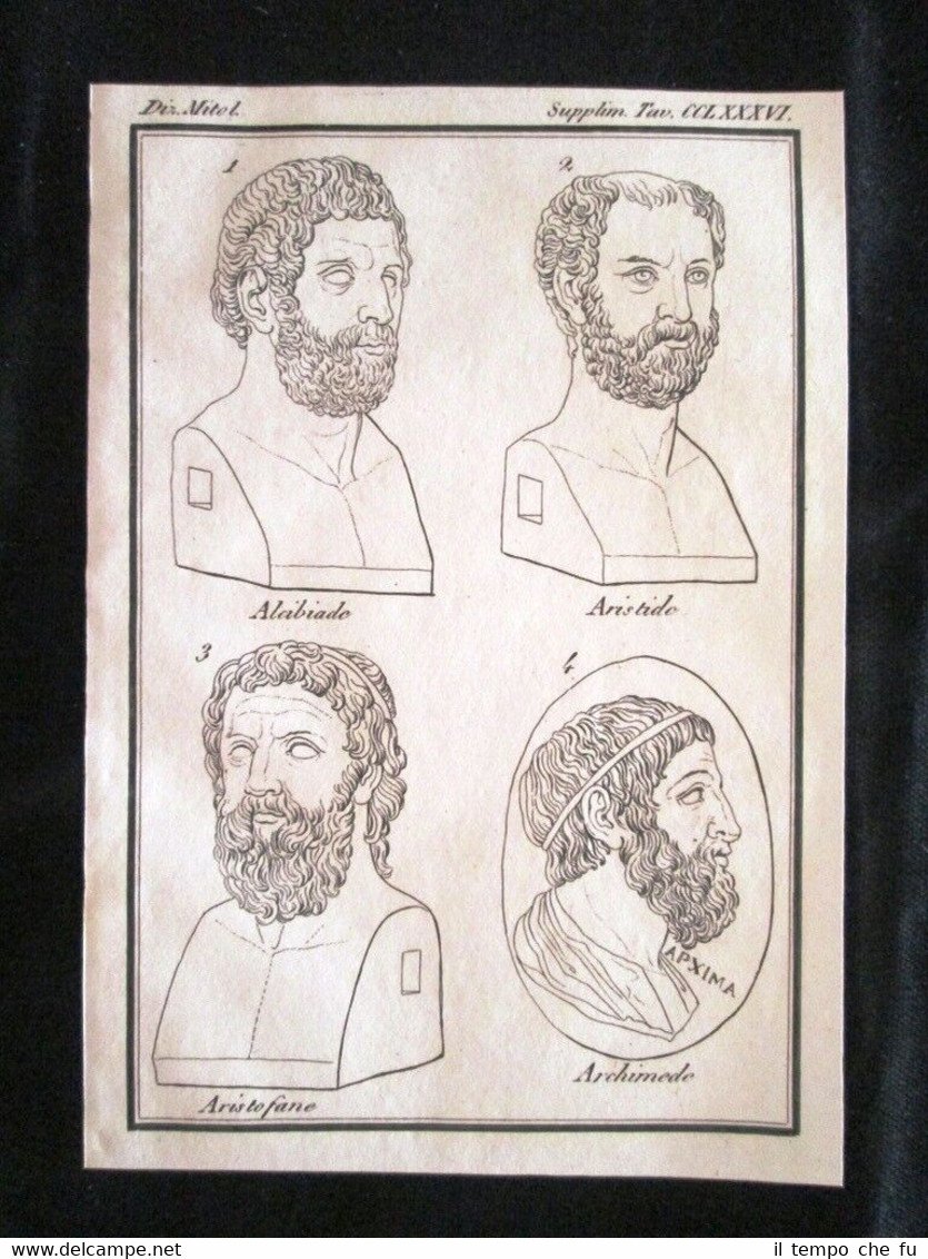Alcibiade,Aristide,Archimede Incisione all'acquaforte del 1820 Mitologia Pozzoli
