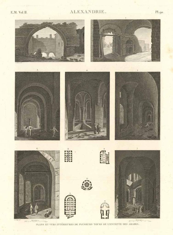 Alexandrie - Plans et vues intérieures de plusieurs tours de l'enceinte des arabes