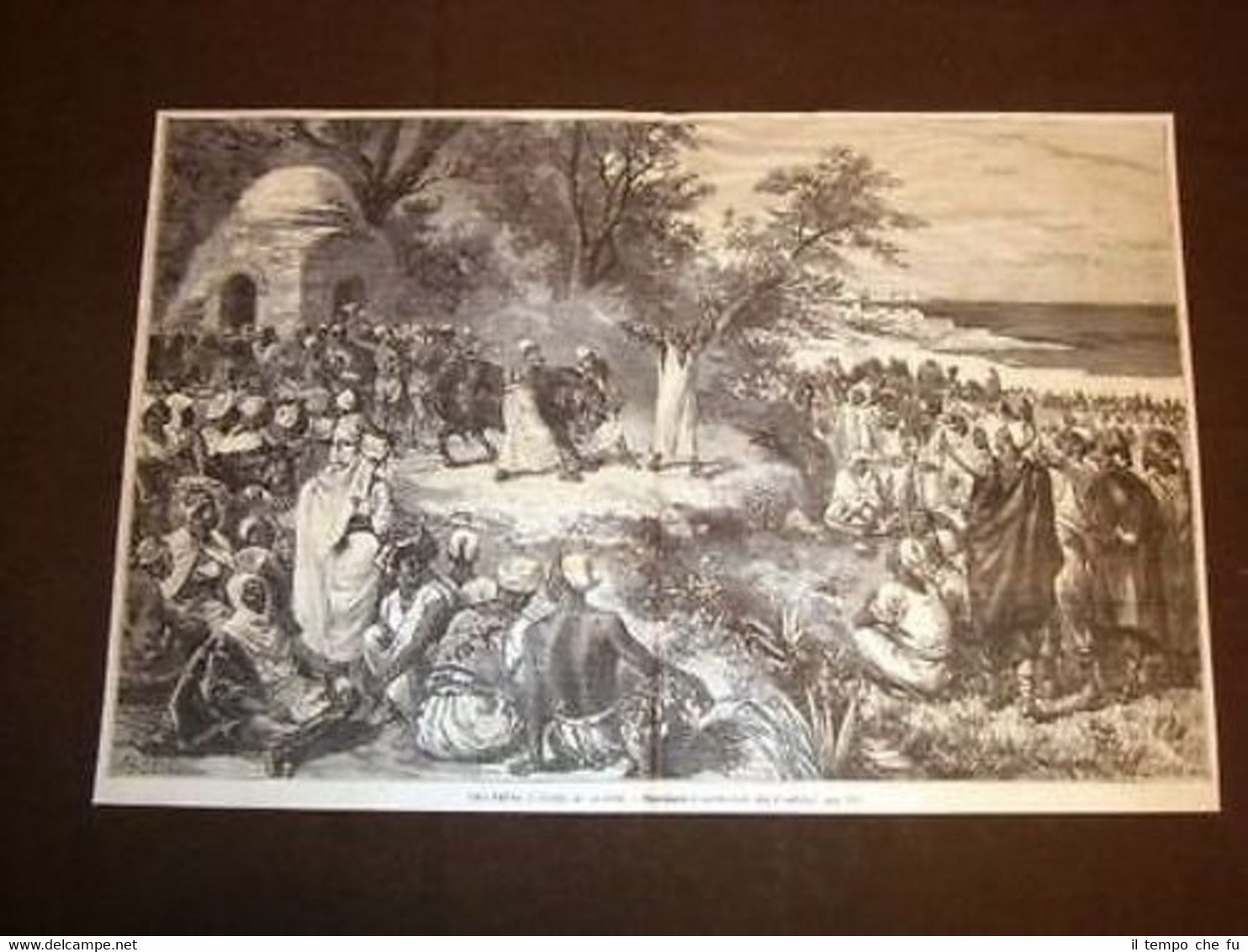 Rara Incisione Estratta da Rivista d'Epoca di metà '800 Enorme Algeri Festa di negri Sacrificio di un Toro o Bue Algeria GIV-005T Dimensioni Cm 40,00 x 26,50 Qualora vogliate delle scansioni migliori contattateci, soddisferemo ogni vostra richiesta. Paypal Carta di credito Bonifico bancario Accuratamente adagiate su un cartoncino e protette da pellicola trasparente rigida il tutto viene inserito dentro plico di adeguate dimensioni per proteggerne l'integrità