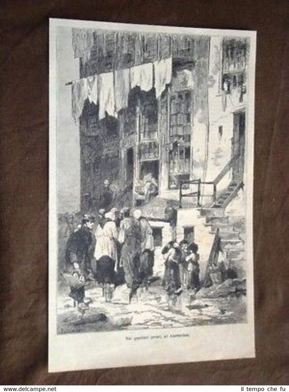 Splendida Incisione Ottocentesca Estratta da Rivista d'Epoca Amsterdam Quartieri Poveri Olanda IP1881-018T Dimensioni Cm 17,50 x 27,50 Qualora vogliate delle scansioni migliori contattateci, soddisferemo ogni vostra richiesta. Paypal Carta di credito Bonifico bancario Accuratamente adagiate su un cartoncino e protette da pellicola trasparente rigida il tutto viene inserito dentro plico di adeguate dimensioni per proteggerne l'integrità