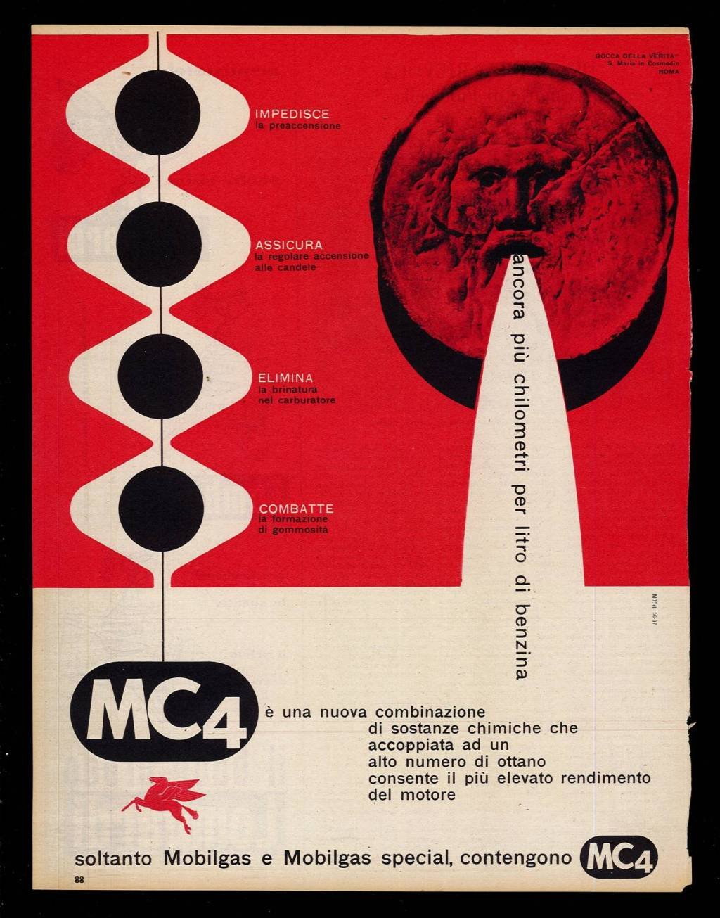 Autore: Mondadori. Luogo: Milano. Anno: [1955]. Tecnica: offset. Dimensioni: 32x25. Conservazione: buone. Foglio sciolto tratto da periodico anni '50, pagina pubblicitaria Mobiloil Mobilgas