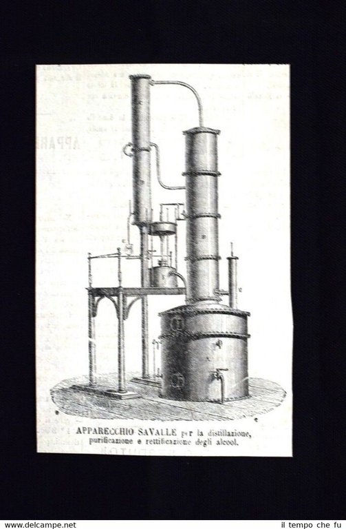 Rara incisione estratta da pubblicazione del 1870. .incisione che ha quindi oltre 147 anni! Apparecchio Savalle per la distillazione, purificazione e rettificazione degli alcool Dimensioni Cm 10,00 x 15,00 EP1870 - 007 Qualora vogliate delle scansioni migliori contattateci, soddisferemo ogni vostra richiesta. Paypal Carta di credito Bonifico bancario Accuratamente adagiate su un cartoncino e protette da pellicola trasparente rigida, il tutto viene inserito dentro plico di adeguate dimensioni per proteggerne l'integrità.