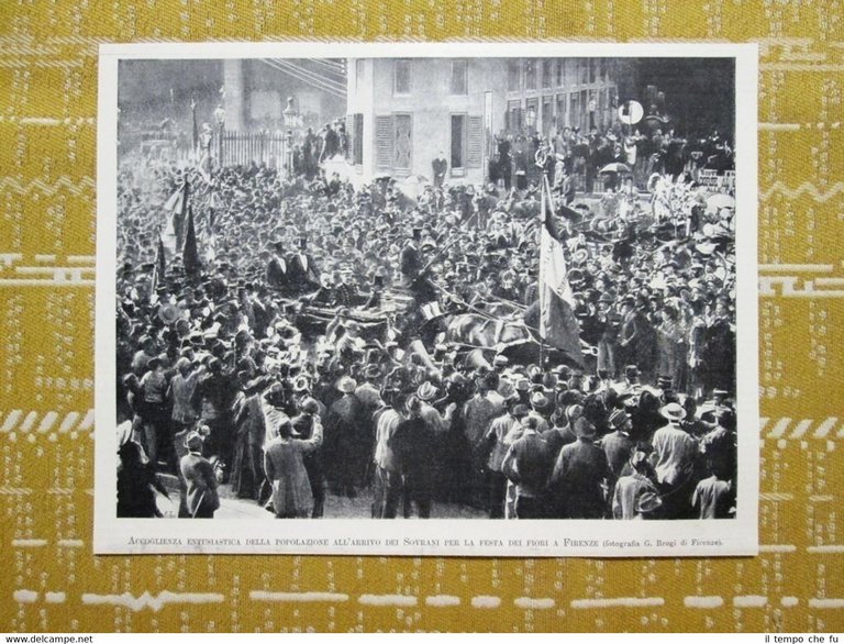 Rara Stampa Estratta da rivista d'epoca del 1897Accoglienza entusiastica della popolazione all'arrivo dei Sovrani per la festa dei fiori a Firenze nel 1897 II1897 - 017 Dimensioni Cm 24,00 x 17,00 Qualora vogliate delle scansioni migliori contattateci, soddisferemo ogni vostra richiesta. PaypalCarta di creditoBonifico bancario Accuratamente adagiate su un cartoncino e protette da pellicola trasparente rigida,il tutto viene inserito dentro plico di adeguate dimensioni per proteggerne l'integrità.