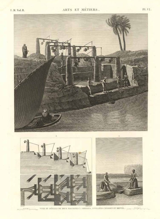 Arts et métiers - Vues et détails de deux machines à arroser, appellées chadouf et mental
