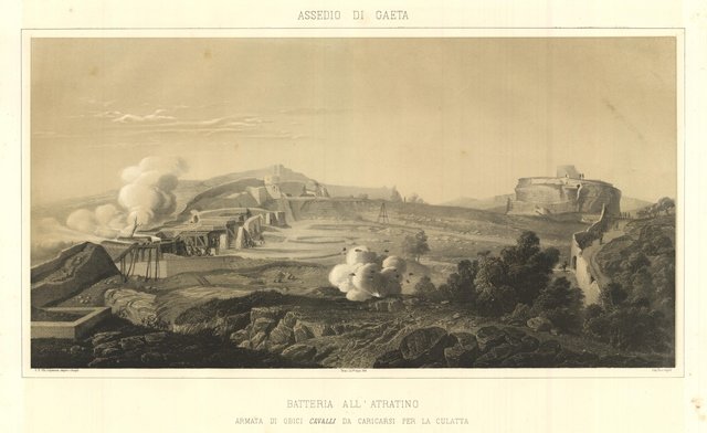 Assedio di Gaeta. Batteria all’Atratino. Armata di obici cavalli da caricarsi per la culatta