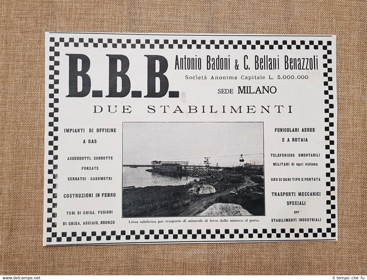 B.B.B. Badoni e Bellani Benazzoli Linea teleferica miniera Pubblicità del 1918