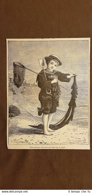 Rara stampa estratta da pubblicazione della seconda metà dell'800. .stampa che ha quindi circa 150 anni! Bambino in costume tipico da mare nella seconda metà dell'800 Moda e costume in Francia Codice articolo: II1903-060 Dimensioni Cm 13,00 x 17,00 Paypal Carta di credito Bonifico bancario Spedizione con posta ordinaria o raccomandata scelta dall'Acquirente nel momento del pagamento Clicca qui per accedere al nostro Store ed al suo sterminato archivio