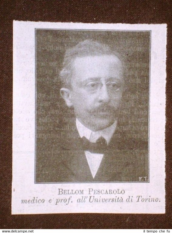 Rara Stampa Estratta da Rivista d'Epoca Bellom Pescarolo Medico e Professore all'Università di Torino IP1913-048T Dimensioni Cm 6,50 x 8,00 Qualora vogliate delle scansioni migliori contattateci, soddisferemo ogni vostra richiesta. Paypal Carta di credito Bonifico bancario Accuratamente adagiate su un cartoncino e protette da pellicola trasparente rigida il tutto viene inserito dentro plico di adeguate dimensioni per proteggerne l'integrità