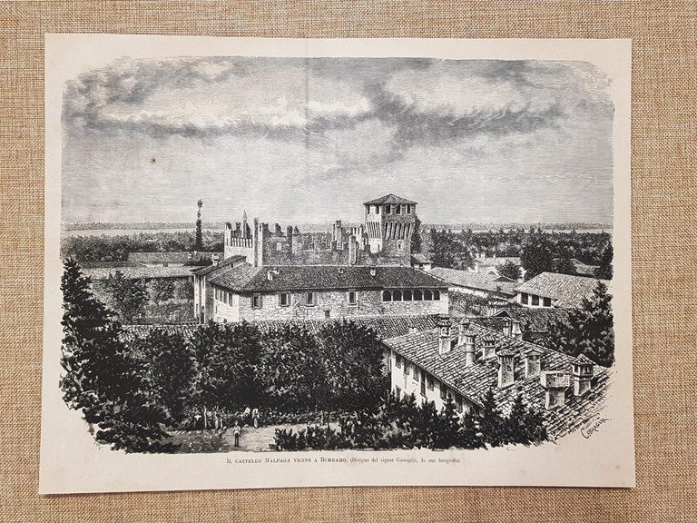 Bergamo nel 1880 Il Castello di Malpaga Disegno del sig. Cornaglia Rara stampa Estratta da pubblicazione del 1880 Bergamo nel 1880 Il Castello di Malpaga Disegno del sig. Cornaglia Codice articolo: II1880-061� Dimensioni: Cm 25,00 x 33,00