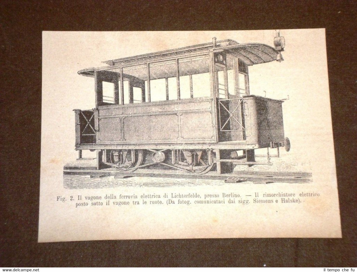 Rara Incisione Estratta da Rivista d'epoca del 1881 Berlino nel 1881 Ferrovia elettrica di Lichterfelde Rimorchiatore elettrico vagone II1881-018T Cm 15,00 x 11,00 Qualora vogliate delle scansioni migliori contattateci, soddisferemo ogni vostra richiesta. Paypal Carta di credito Bonifico bancario Accuratamente adagiate su un cartoncino e protette da pellicola trasparente rigida il tutto viene inserito dentro plico di adeguate dimensioni per proteggerne l'integrità