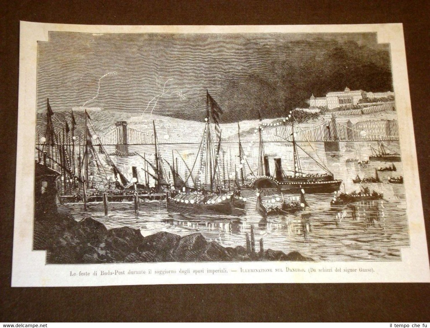Rara Incisione Estratta da Rivista d'epoca del 1881 Budapest nel 1881 Feste per il Principe Rodolfo e la Principessa Stefania Il Danubio illuminato Ungheria II1881-009T Cm 23,00 x 16,00 Qualora vogliate delle scansioni migliori contattateci, soddisferemo ogni vostra richiesta. Paypal Carta di credito Bonifico bancario Accuratamente adagiate su un cartoncino e protette da pellicola trasparente rigida il tutto viene inserito dentro plico di adeguate dimensioni per proteggerne l'integrità
