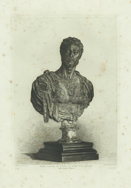 Buste colossal en bronze de Cosme 1er De Medicis | Prints | Cellini Benveuto sculp. – Martinez N. acquaf., Cellini Benveuto sculp. – Martinez N. acquaf.