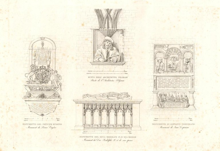 Busto dell'architetto Pilgram - Monumento del principe Eugenio - Monumento del Duca Rodolfo IV e sua moglie - Monumento di Giovanni Cospiniano