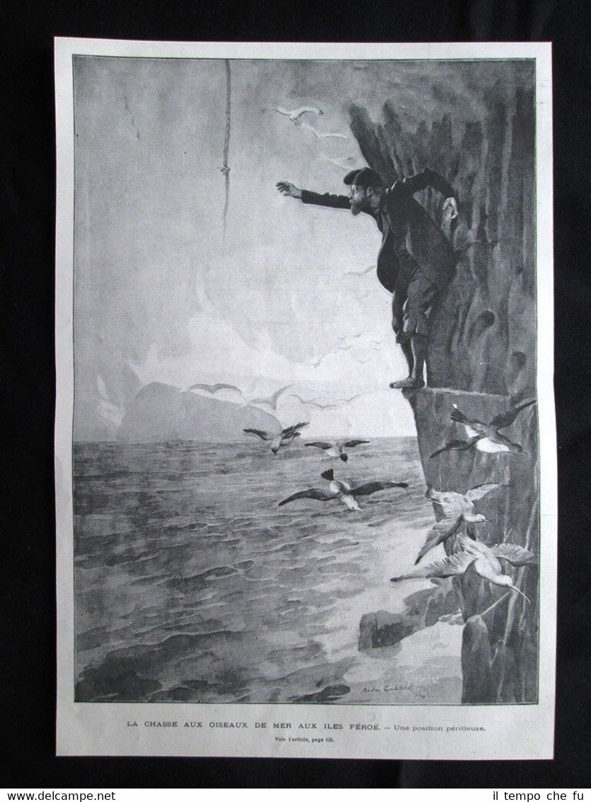 Caccia agli uccelli di mare, Isole Faroe - Posizione pericolosa Stampa del 1903
