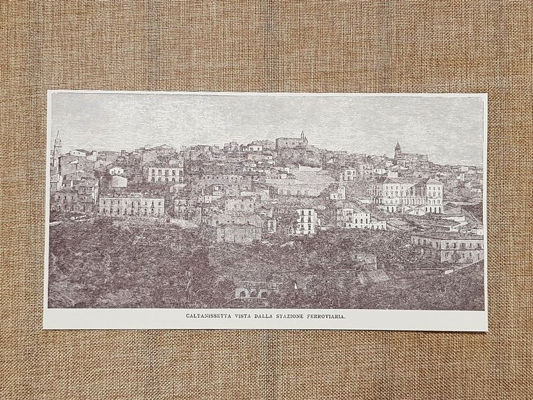 Caltanissetta nell'800 Veduta della cittàdalla stazione ferroviaria Sicilia Rara stampa estratta da pubblicazione di fine '900 Caltanissetta nell'800 Veduta della città dalla stazione ferroviaria Sicilia Codice prodotto: LCCI - 014 Dimensioni: Cm 25,00 x 13,00