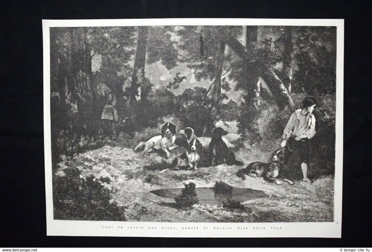 Rara incisione estratta da pubblicazione del 1876. .incisione che ha quindi oltre 141 anni! Cani da caccia nel bosco, quadro di Narciso Diaz della Pena Dimensioni Cm 33,00 x 24,00 EP1876 - 107 Qualora vogliate delle scansioni migliori contattateci, soddisferemo ogni vostra richiesta. Paypal Carta di credito Bonifico bancario Accuratamente adagiate su un cartoncino e protette da pellicola trasparente rigida, il tutto viene inserito dentro plico di adeguate dimensioni per proteggerne l'integrità.