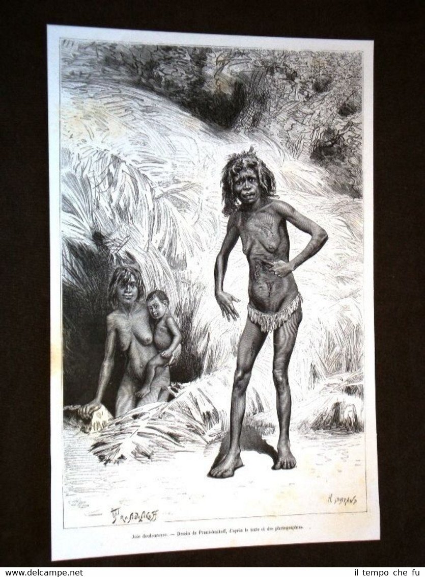 Rara Incisione Estratta da Rivista d'epoca del 1889 Cannibali d'Australia nel 1889 Donna si provoca ferite, giovane donna e bambino TDM1889-004T Dimensioni Cm 17,00 x 26,00 Qualora vogliate delle scansioni migliori contattateci, soddisferemo ogni vostra richiesta. Paypal Carta di credito Bonifico bancario Accuratamente adagiate su un cartoncino e protette da pellicola trasparente rigida il tutto viene inserito dentro plico di adeguate dimensioni per proteggerne l'integrità