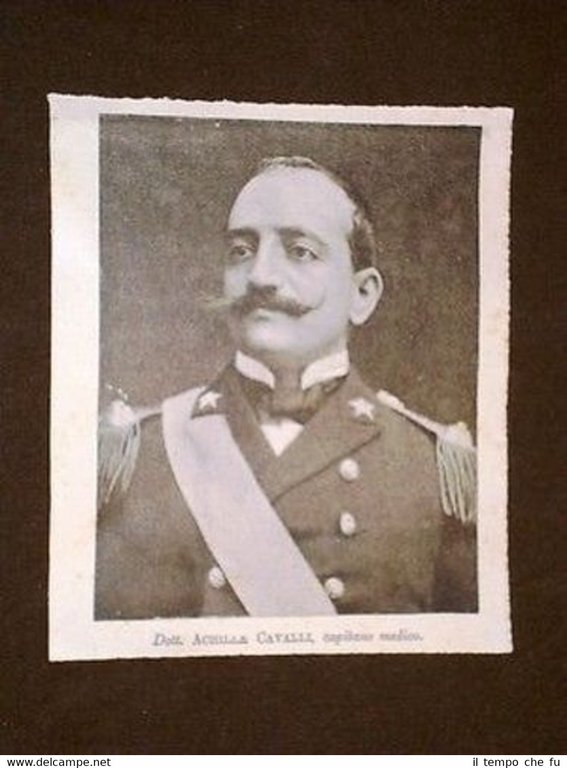 Rara Stampa Estratta da Rivista d'Epoca Capitano Medico Dott.Achille Cavalli Marina d'Italia IP1899-022T Dimensioni Cm 11,50 x 13,50 Qualora vogliate delle scansioni migliori contattateci, soddisferemo ogni vostra richiesta. Paypal Carta di credito Bonifico bancario Accuratamente adagiate su un cartoncino e protette da pellicola trasparente rigida il tutto viene inserito dentro plico di adeguate dimensioni per proteggerne l'integrità