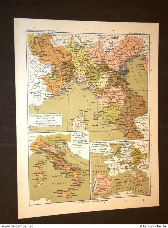 Carta cartina estratta da Atlante del 1890 Alta e media Italia dal 1492 al 1559