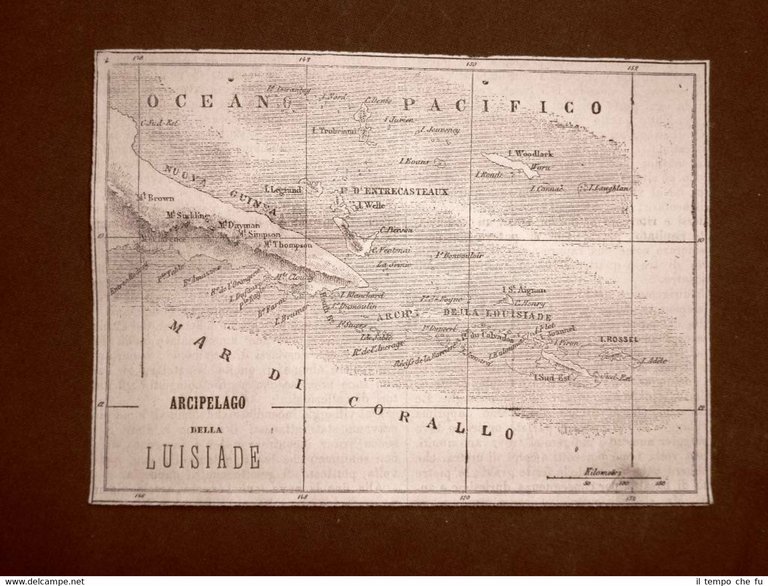 Carta geografica del 1863 Arcipelago della Louisiade Papua Nuova Guinea