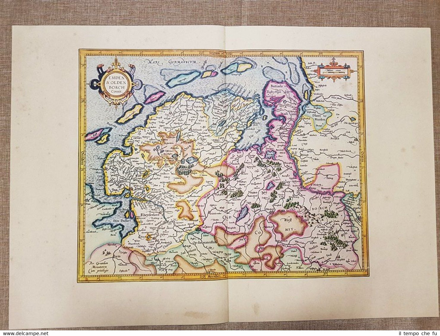 Carta geografica mappa Emden e Oldenborch Germania Anno 1595 Mercatore Ristampa