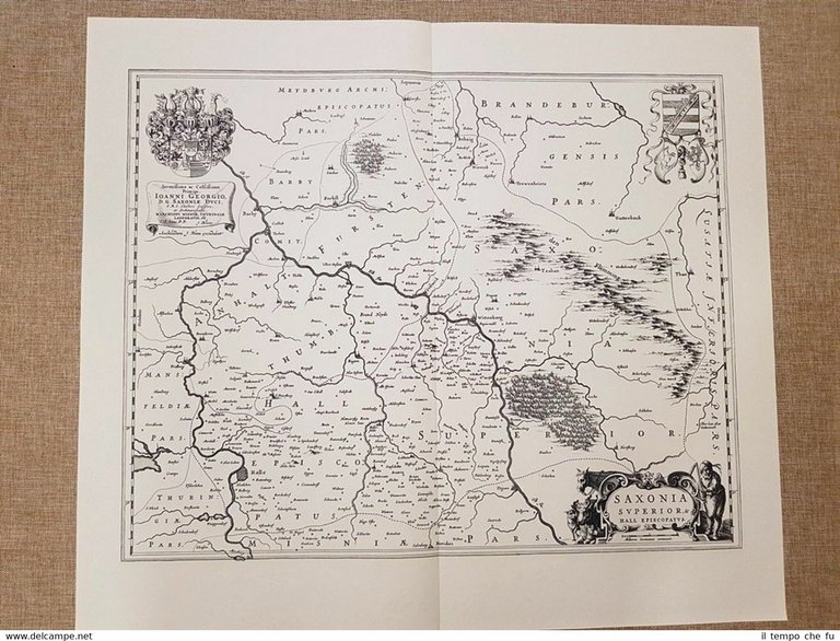 Carta geografica Mappa Sassonia superiore Hall Episcopatus 1640 J.Blaeu Ristampa