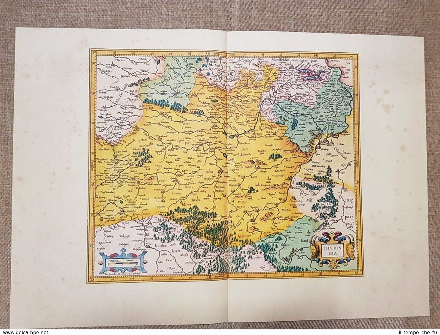 Carta geografica Mappa Thuringia Germania Anno 1595 Mercatore Mercator Ristampa