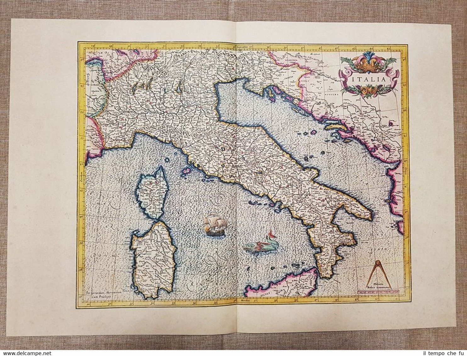 Carta geografica o mappa Italia Anno 1595 di Mercatore Mercator Ristampa