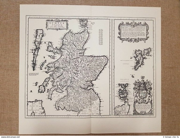 Rara e grande ristampa dei primi '900 Stampata su carta speciale Carta geografica o Mappa Regno di Scozia Inghilterra Anno 1667 di Joan Blaeu Dimensioni: Cm 60,00 x 53,00 Codice prodotto: Litografie - 1193 Qualora vogliate delle scansioni migliori contattateci, soddisferemo ogni vostra richiesta. Paypal Carta di credito Bonifico bancario Accuratamente adagiate su un cartoncino e protette da pellicola trasparente rigida, il tutto viene inserito dentro plico di adeguate dimensioni per proteggerne l'integrità.