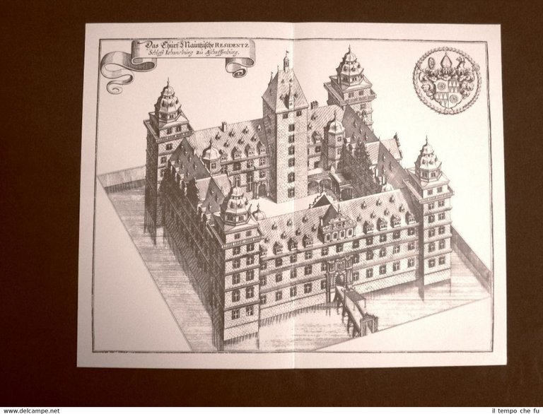 Castello di Aschaffenburg Germania Incisione Merian Matthäus del 1640 Ristampa