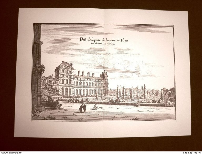 Castello di Parigi Louvre Francia Incisione di Merian Matthäus del 1640 Ristampa